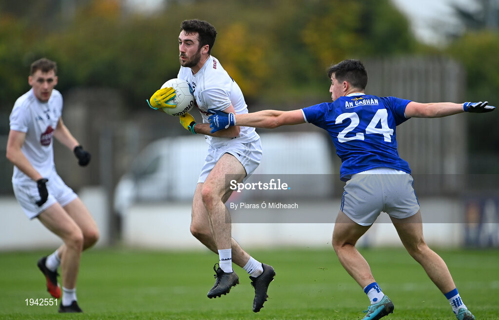 18 October 2020; Kevin Flynn of Kildare in action against Cormac Timoney of Cavan during the Allianz Football League Division 2 Round 6 match between Kildare and Cavan at St Conleth's Park in Newbridge, Kildare. Photo by Piaras Ó Mídheach/Sportsfile