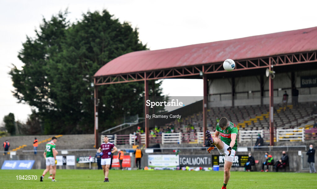 18 October 2020; Cillian O'Connor of Mayo kicks a free during the Allianz Football League Division 1 Round 6 match between Galway and Mayo at Tuam Stadium in Tuam, Galway. Photo by Ramsey Cardy/Sportsfile