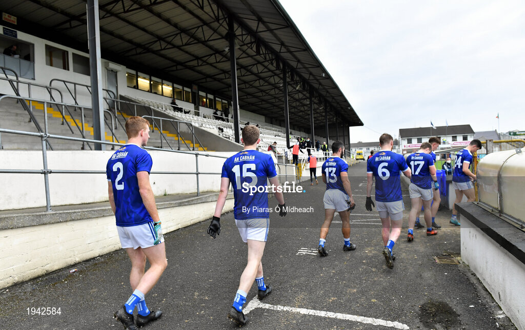 18 October 2020; Cavan players make their way from the team talk in the stand to the pitch for the second half during the Allianz Football League Division 2 Round 6 match between Kildare and Cavan at St Conleth's Park in Newbridge, Kildare. Photo by Piaras Ó Mídheach/Sportsfile