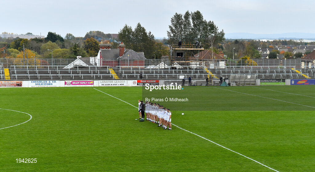 18 October 2020; Kildare players stand for Amhrán na bhFiann before the Allianz Football League Division 2 Round 6 match between Kildare and Cavan at St Conleth's Park in Newbridge, Kildare. Photo by Piaras Ó Mídheach/Sportsfile