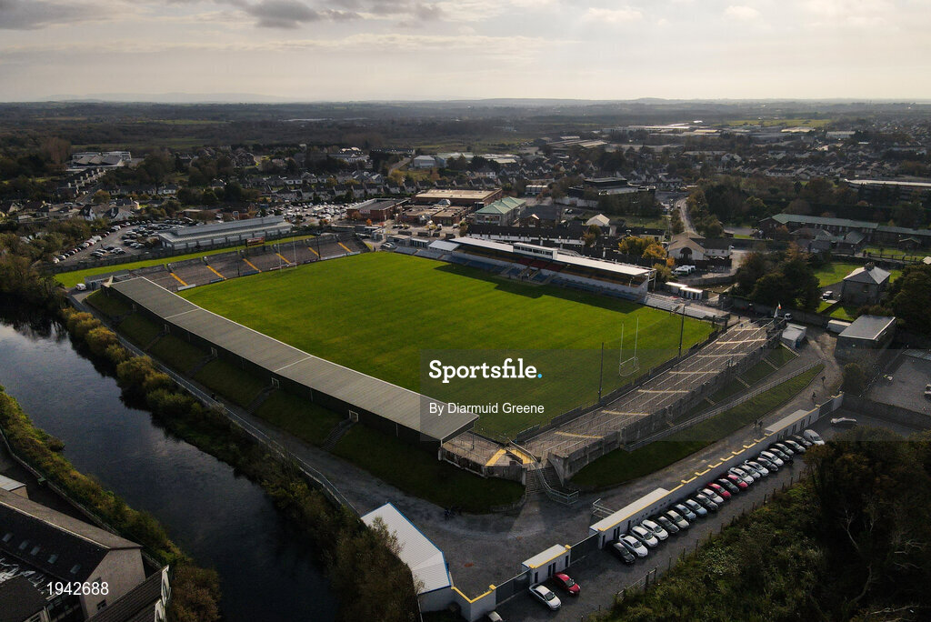 18 October 2020; An aerial view of Cusack Park prior to the Allianz Football League Division 2 Round 6 match between Clare and Fermanagh at Cusack Park in Ennis, Clare. Photo by Diarmuid Greene/Sportsfile