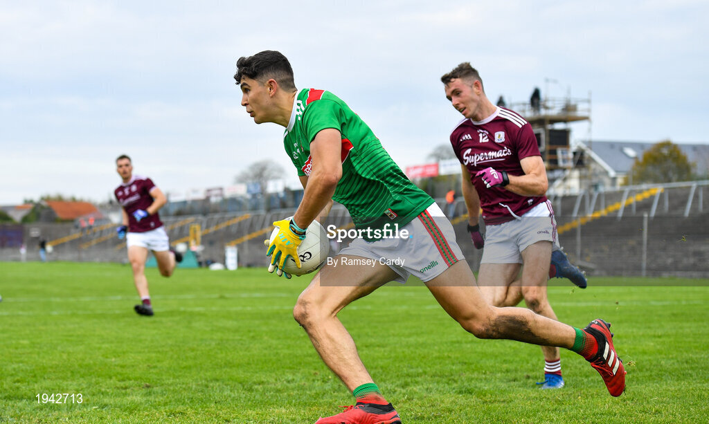 18 October 2020; Tommy Conroy of Mayo and Jason Leonard of Galway during the Allianz Football League Division 1 Round 6 match between Galway and Mayo at Tuam Stadium in Tuam, Galway. Photo by Ramsey Cardy/Sportsfile