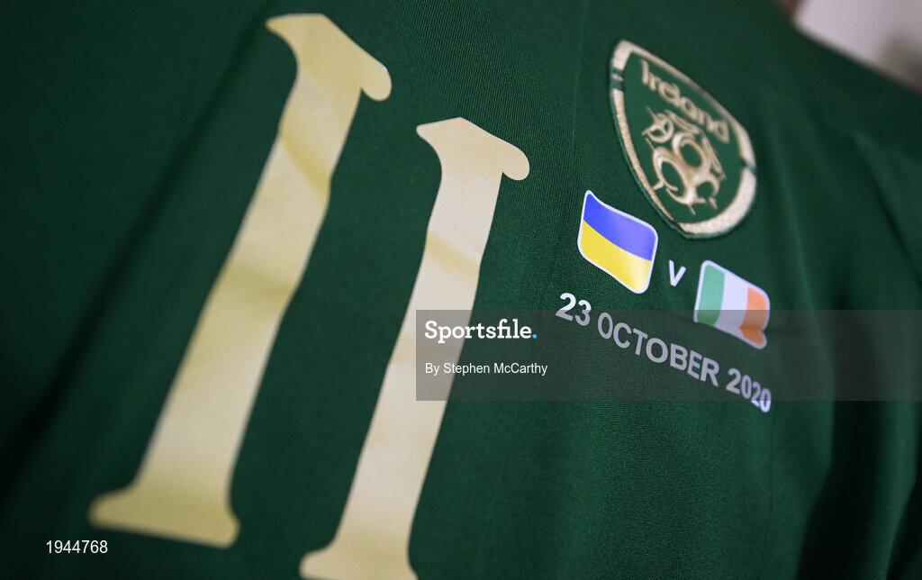 23 October 2020; A detailed view of the shirt of Katie McCabe of Republic of Ireland ahead of the UEFA Women's EURO 2022 Qualifier match between Ukraine and Republic of Ireland at the Obolon Arena in Kyiv, Ukraine. Photo by Stephen McCarthy/Sportsfile