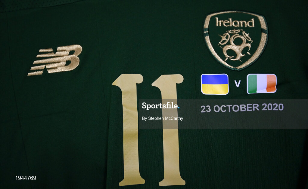 23 October 2020; The shirt of Katie McCabe of Republic of Ireland is seen ahead of the UEFA Women's EURO 2022 Qualifier match between Ukraine and Republic of Ireland at the Obolon Arena in Kyiv, Ukraine. Photo by Stephen McCarthy/Sportsfile