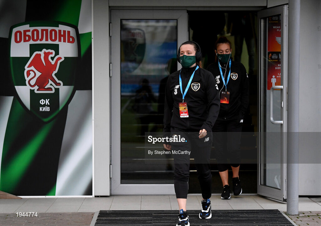 23 October 2020; Harriet Scott of Republic of Ireland arrives ahead of the UEFA Women's EURO 2022 Qualifier match between Ukraine and Republic of Ireland at the Obolon Arena in Kyiv, Ukraine. Photo by Stephen McCarthy/Sportsfile