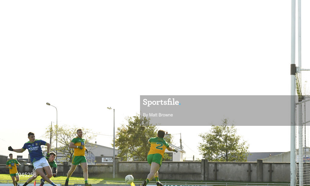 24 October 2020; Sean O'Shea of Kerry scores the first goal past Donegal goalkeeper Shaun Patton during the Allianz Football League Division 1 Round 7 match between Kerry and Donegal at Austin Stack Park in Tralee, Kerry. Photo by Matt Browne/Sportsfile