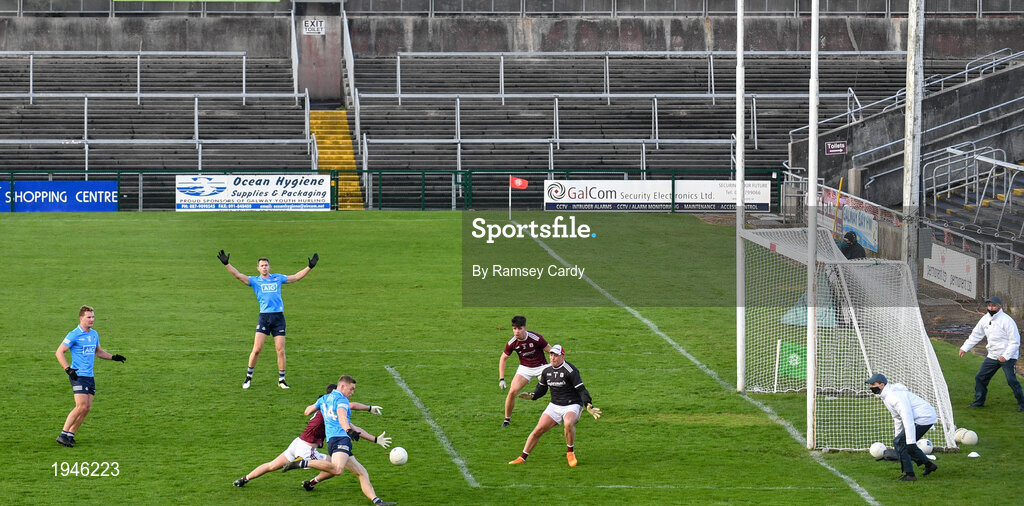 25 October 2020; Con O'Callaghan of Dublin shoots to score his side's second goal during the Allianz Football League Division 1 Round 7 match between Galway and Dublin at Pearse Stadium in Galway. Photo by Ramsey Cardy/Sportsfile