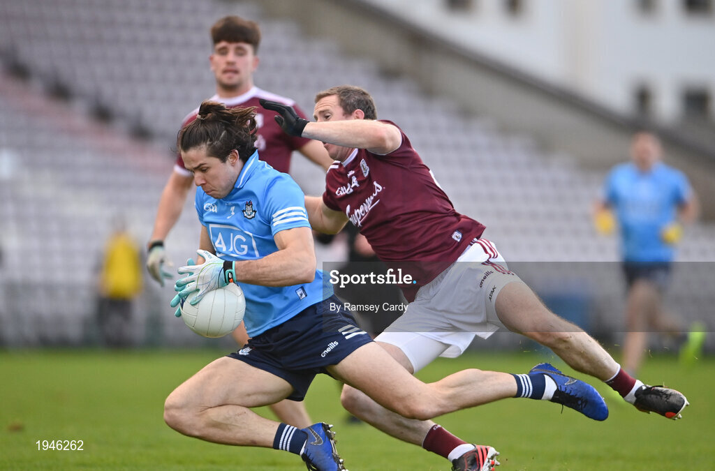 25 October 2020; David Byrne of Dublin in action against Gary Sice of Galway during the Allianz Football League Division 1 Round 7 match between Galway and Dublin at Pearse Stadium in Galway. Photo by Ramsey Cardy/Sportsfile