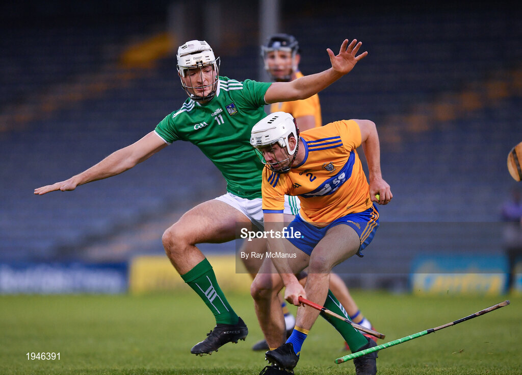 25 October 2020; Jack Browne of Clare in action against Kyle Hayes of Limerick during the Munster GAA Hurling Senior Championship Quarter-Final match between Limerick and Clare at Semple Stadium in Thurles, Tipperary. This game also doubles up as the Allianz Hurling League Division 1 Final as the GAA season was shortened due to the coronavirus pandemic and both teams had qualified for the final. Photo by Ray McManus/Sportsfile
