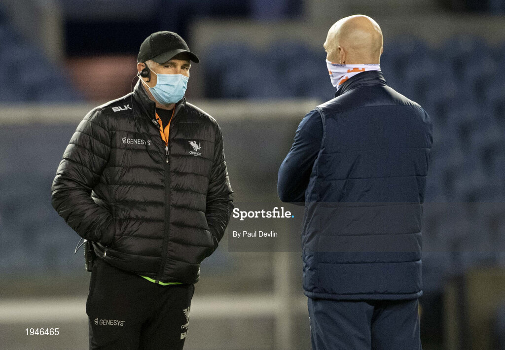 25 October 2020; Connacht head coach Andy Friend, left, ahead of the Guinness PRO14 match between Edinburgh and Connacht at BT Murrayfield in Edinburgh, Scotland. Photo by Paul Devlin/Sportsfile