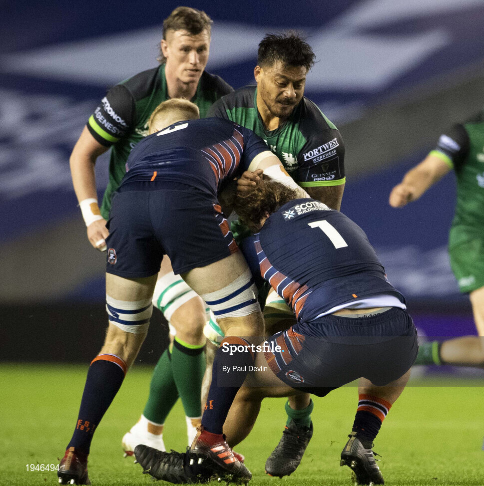 25 October 2020; Abraham Papali’i of Connacht is tackled by Hamish Watson of Edinburgh during the Guinness PRO14 match between Edinburgh and Connacht at BT Murrayfield in Edinburgh, Scotland. Photo by Paul Devlin/Sportsfile