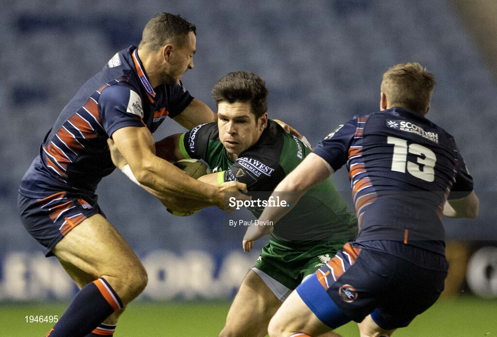 25 October 2020; Alex Wootton of Connacht is tackled by James Johnstone of Edinburgh during the Guinness PRO14 match between Edinburgh and Connacht at BT Murrayfield in Edinburgh, Scotland. Photo by Paul Devlin/Sportsfile