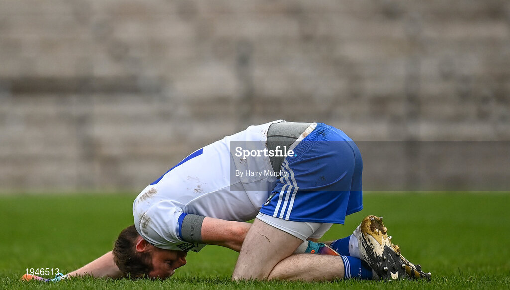 25 October 2020; Conor McManus of Monaghan goes down injured during the Allianz Football League Division 1 Round 7 match between Monaghan and Meath at St Tiernach's Park in Clones, Monaghan. Photo by Harry Murphy/Sportsfile