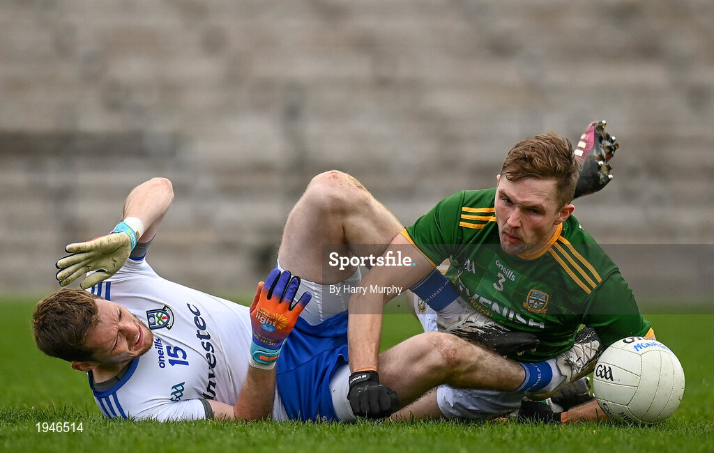 25 October 2020; Conor McManus of Monaghan collides with Conor McGill of Meath during the Allianz Football League Division 1 Round 7 match between Monaghan and Meath at St Tiernach's Park in Clones, Monaghan. Photo by Harry Murphy/Sportsfile