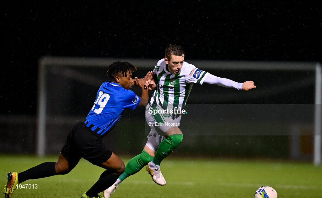 27 October 2020; Derek Daly of Bray Wanderers is tackled by Tumelo Tiou of Athlone Town during the SSE Airtricity League First Division match between Athlone Town and Bray Wanderers at Athlone Town Stadium in Athlone, Westmeath. Photo by Eóin Noonan/Sportsfile