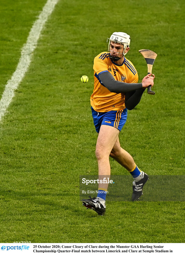 25 October 2020; Conor Cleary of Clare during the Munster GAA Hurling Senior Championship Quarter-Final match between Limerick and Clare at Semple Stadium in Thurles, Tipperary. This game also doubles up as the Allianz Hurling League Division 1 Final as the GAA season was shortened due to the coronavirus pandemic and both teams had qualified for the final. Photo by Eóin Noonan/Sportsfile