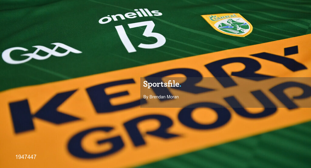 27 October 2020; Kerry GAA crest on a jersey prior to a Kerry Football squad portraits session at the Kerry GAA Centre of Excellence in Currans, Kerry. Photo by Brendan Moran/Sportsfile