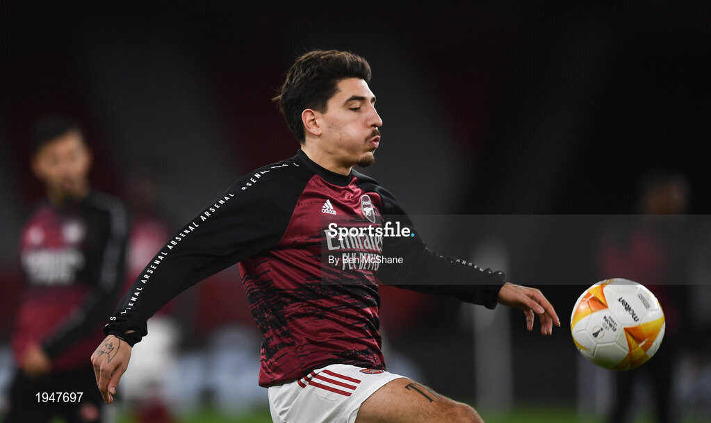 29 October 2020; Hector Bellerín of Arsenal ahead of the UEFA Europa League Group B match between Arsenal and Dundalk at the Emirates Stadium in London, England. Photo by Ben McShane/Sportsfile
