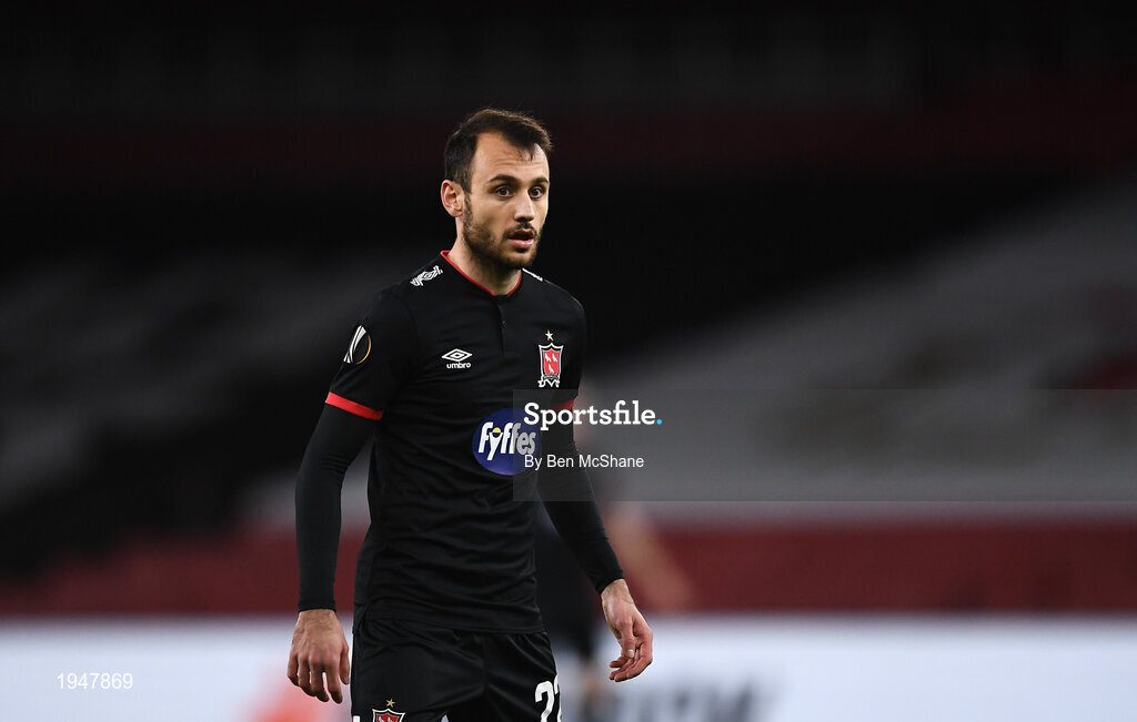 29 October 2020; Stefan Colovic of Dundalk during the UEFA Europa League Group B match between Arsenal and Dundalk at the Emirates Stadium in London, England. Photo by Ben McShane/Sportsfile