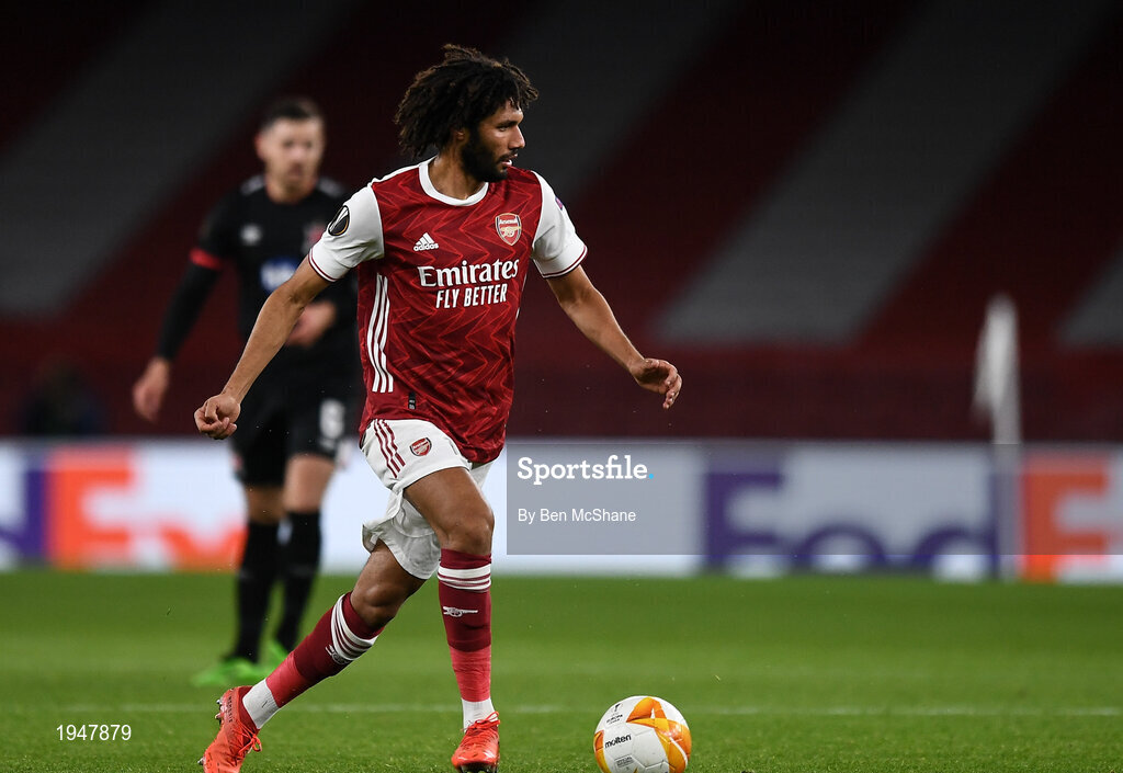 29 October 2020; Mohamed Elneny of Arsenal during the UEFA Europa League Group B match between Arsenal and Dundalk at the Emirates Stadium in London, England. Photo by Ben McShane/Sportsfile