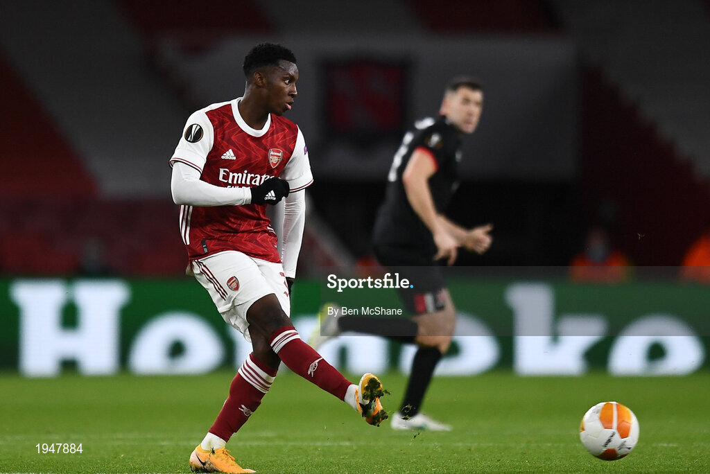 29 October 2020; Eddie Nketiah of Arsenal during the UEFA Europa League Group B match between Arsenal and Dundalk at the Emirates Stadium in London, England. Photo by Ben McShane/Sportsfile
