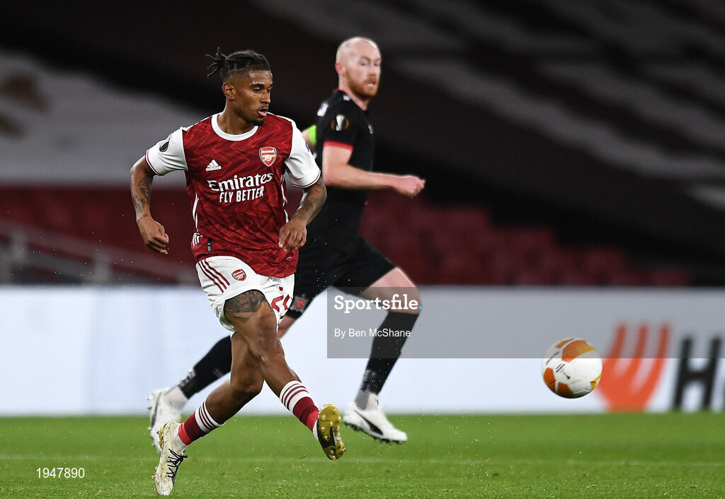 29 October 2020; Reiss Nelson of Arsenal during the UEFA Europa League Group B match between Arsenal and Dundalk at the Emirates Stadium in London, England. Photo by Ben McShane/Sportsfile