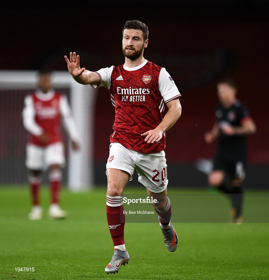 29 October 2020; Shkodran Mustafi of Arsenal during the UEFA Europa League Group B match between Arsenal and Dundalk at the Emirates Stadium in London, England. Photo by Ben McShane/Sportsfile