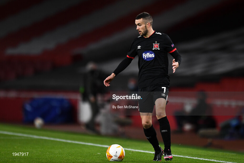 29 October 2020; Michael Duffy of Dundalk during the UEFA Europa League Group B match between Arsenal and Dundalk at the Emirates Stadium in London, England. Photo by Ben McShane/Sportsfile