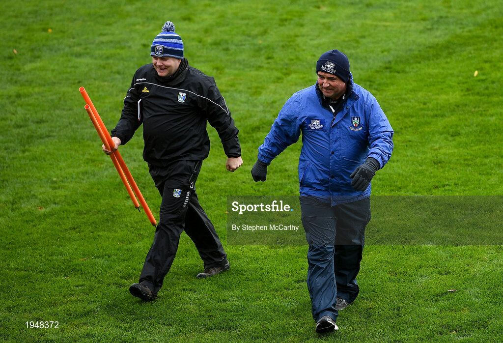 31 October 2020; Monaghan manager Séamus McEnaney, right, and Cavan manager Mickey Graham prior to the Ulster GAA Football Senior Championship Preliminary Round match between Monaghan and Cavan at St Tiernach’s Park in Clones, Monaghan. Photo by Stephen McCarthy/Sportsfile