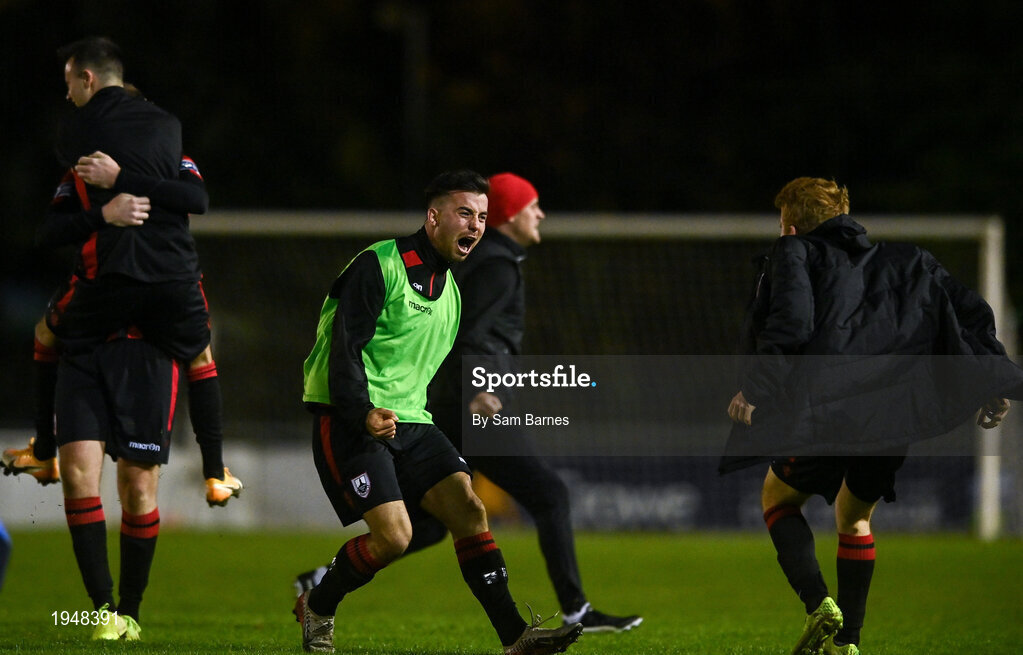31 October 2020; Longford players celebrate following the SSE Airtricity League First Division Play-off Semi-Final match between UCD and Longford Town at the UCD Bowl in Belfield, Dublin. Photo by Sam Barnes/Sportsfile