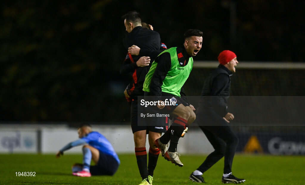 31 October 2020; Longford players celebrate following the SSE Airtricity League First Division Play-off Semi-Final match between UCD and Longford Town at the UCD Bowl in Belfield, Dublin. Photo by Sam Barnes/Sportsfile
