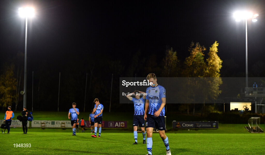 31 October 2020; UCD players leave the field dejected following the SSE Airtricity League First Division Play-off Semi-Final match between UCD and Longford Town at the UCD Bowl in Belfield, Dublin. Photo by Sam Barnes/Sportsfile