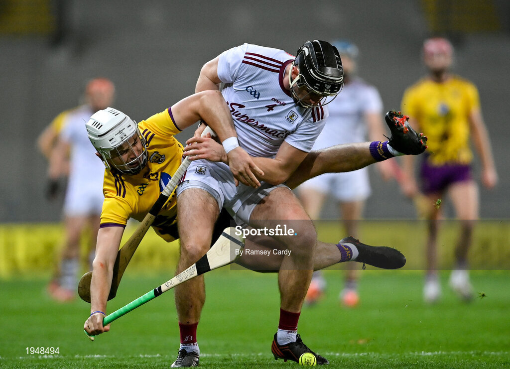 31 October 2020; Aidan Harte of Galway in action against Rory O’Connor of Wexford during the Leinster GAA Hurling Senior Championship Semi-Final match between Galway and Wexford at Croke Park in Dublin. Photo by Ramsey Cardy/Sportsfile
