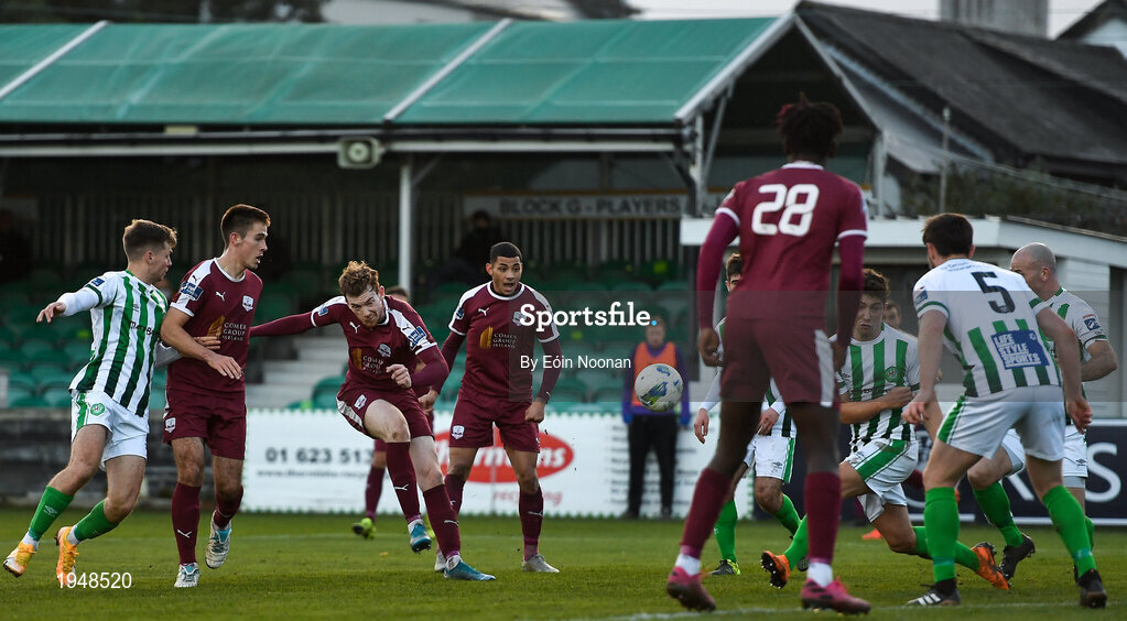 31 October 2020; Jack Lynch of Galway United has a shot on goal which goes wide during the SSE Airtricity League First Division Play-off Semi-Final match between Bray Wanderers and Galway United at the Carlisle Grounds in Bray, Wicklow. Photo by Eóin Noonan/Sportsfile