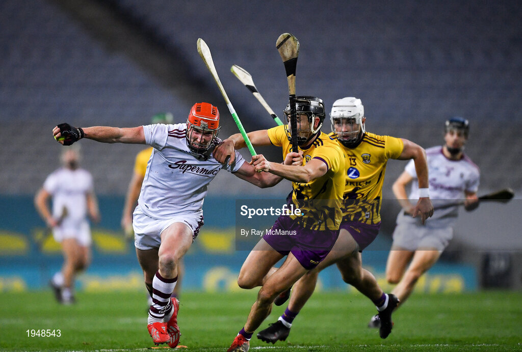 31 October 2020; Conor Whelan of Galway in action against Joe O'Connor and Conor McDonald of Wexford, right, during the Leinster GAA Hurling Senior Championship Semi-Final match between Galway and Wexford at Croke Park in Dublin. Photo by Ray McManus/Sportsfile
