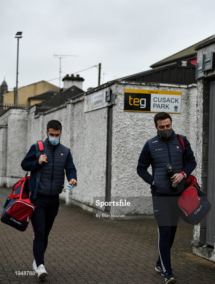 1 November 2020; Louth players Patrick Reilly, left, and Tommy Dornan arriving to TEG Cusack Park prior to the Leinster GAA Football Senior Championship Round 1 match between Louth and Longford at TEG Cusack Park in Mullingar, Westmeath. Photo by Eóin Noonan/Sportsfile