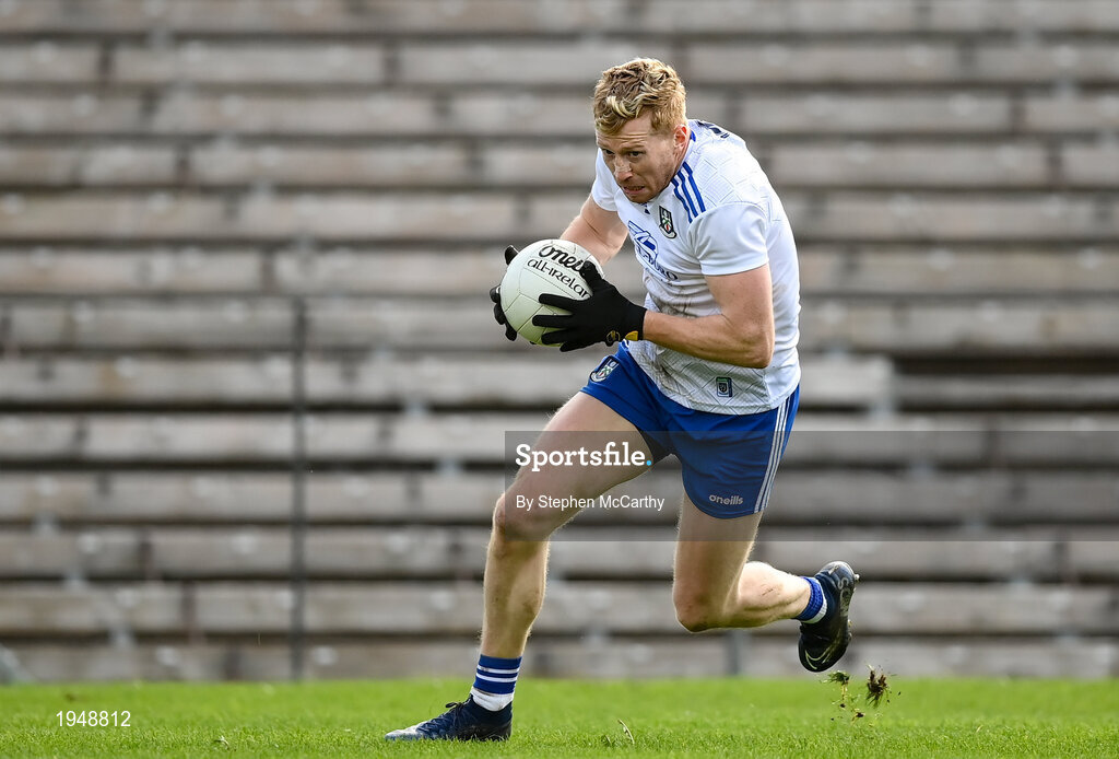 31 October 2020; Kieran Hughes of Monaghan during the Ulster GAA Football Senior Championship Preliminary Round match between Monaghan and Cavan at St Tiernach’s Park in Clones, Monaghan. Photo by Stephen McCarthy/Sportsfile