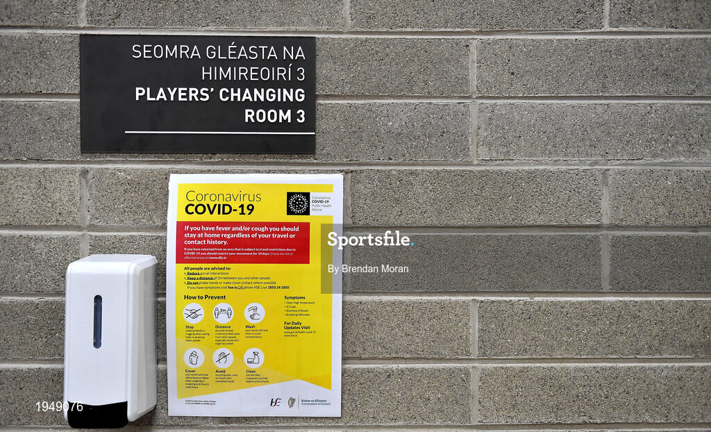 1 November 2020; A hand sanitising station is seen outside one of the dressing rooms prior to the Munster GAA Hurling Senior Championship Semi-Final match between Tipperary and Limerick at Páirc Uí Chaoimh in Cork. Photo by Brendan Moran/Sportsfile