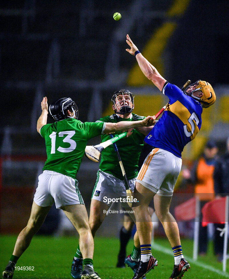 1 November 2020; Ronan Maher of Tipperary in action against Peter Casey, right, and Graeme Mulcahy of Limerick during the Munster GAA Hurling Senior Championship Semi-Final match between Tipperary and Limerick at Páirc Uí Chaoimh in Cork. Photo by Daire Brennan/Sportsfile