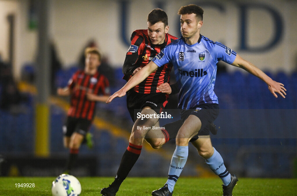 31 October 2020; Callum Warfield of Longford Town in action against Harry McEvoy of UCD during the SSE Airtricity League First Division Play-off Semi-Final match between UCD and Longford Town at the UCD Bowl in Belfield, Dublin. Photo by Sam Barnes/Sportsfile