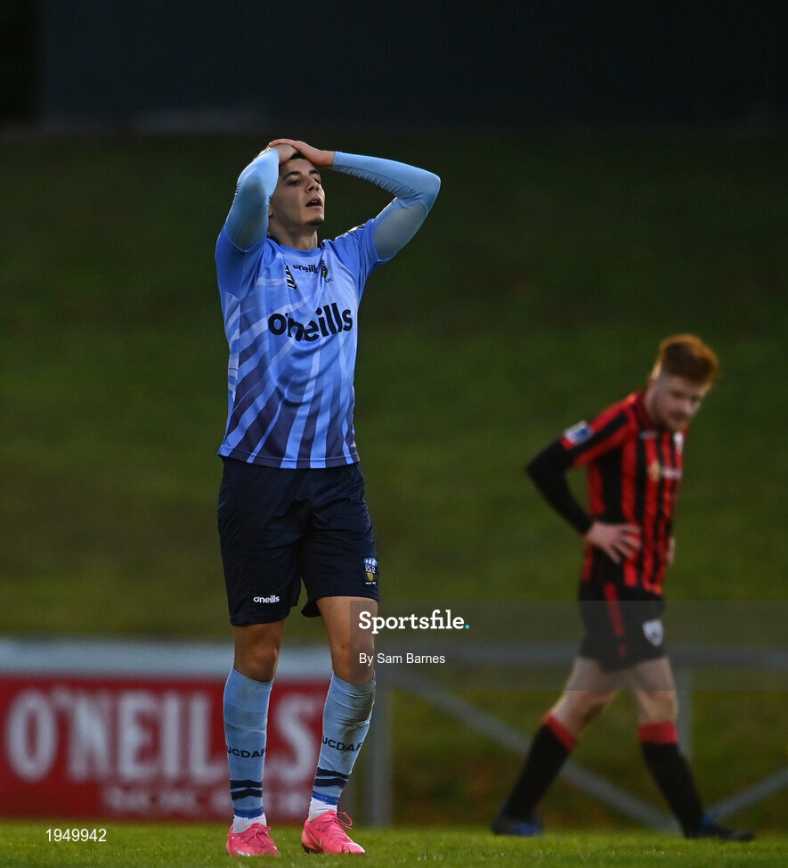 31 October 2020; Yousef Mahdy of UCD reacts to a missed chance during the SSE Airtricity League First Division Play-off Semi-Final match between UCD and Longford Town at the UCD Bowl in Belfield, Dublin. Photo by Sam Barnes/Sportsfile