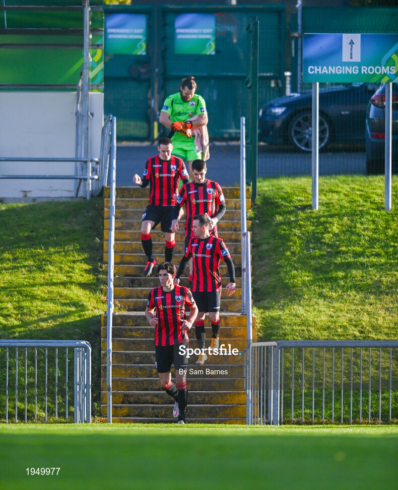 31 October 2020; Longford Town players make their way on to the pitch ahead of the SSE Airtricity League First Division Play-off Semi-Final match between UCD and Longford Town at the UCD Bowl in Belfield, Dublin. Photo by Sam Barnes/Sportsfile