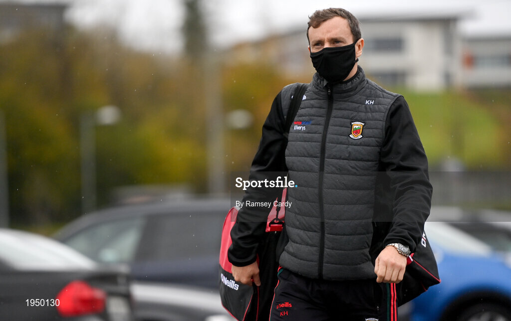 1 November 2020; Keith Higgins of Mayo arrives ahead of the Connacht GAA Football Senior Championship Quarter-Final match between Leitrim and Mayo at Avantcard Páirc Sean Mac Diarmada in Carrick-on-Shannon, Leitrim. Photo by Ramsey Cardy/Sportsfile