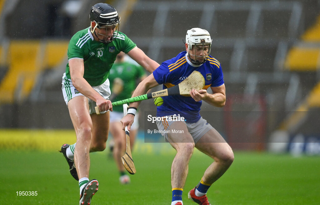 1 November 2020; Brendan Maher of Tipperary in action against Gearoid Hegarty of Limerick during the Munster GAA Hurling Senior Championship Semi-Final match between Tipperary and Limerick at Páirc Uí Chaoimh in Cork. Photo by Brendan Moran/Sportsfile