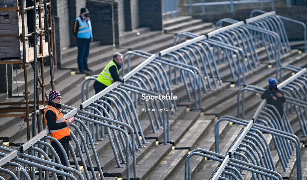 7 November 2020; Stewards watch on in empty terracing during the Ulster GAA Football Senior Championship Quarter-Final match between Cavan and Antrim at Kingspan Breffni in Cavan. Photo by Ramsey Cardy/Sportsfile