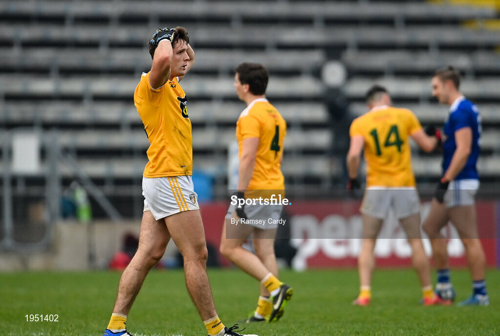 7 November 2020; Mark Sweeney of Antrim following their defeat in the Ulster GAA Football Senior Championship Quarter-Final match between Cavan and Antrim at Kingspan Breffni in Cavan. Photo by Ramsey Cardy/Sportsfile