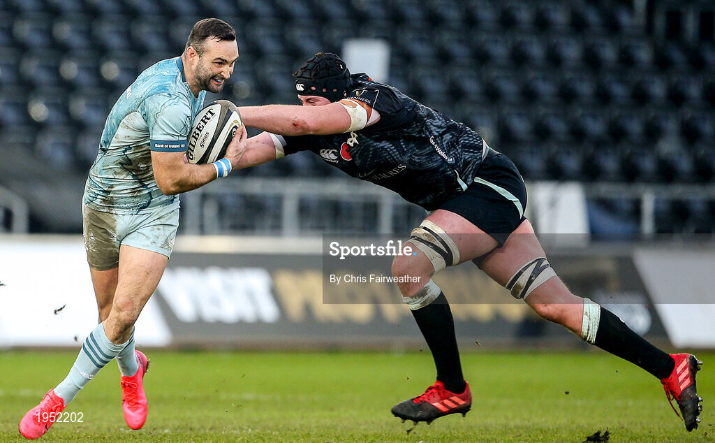 8 November 2020; Dave Kearney of Leinster is challenged by Adam Beard of Ospreys during the Guinness PRO14 match between Ospreys and Leinster at Liberty Stadium in Swansea, Wales. Photo by Chris Fairweather/Sportsfile