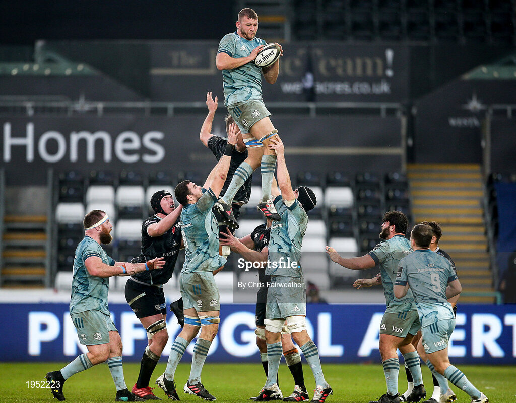 8 November 2020; Ross Molony of Leinster wins possession of the ball in a line-out during the Guinness PRO14 match between Ospreys and Leinster at Liberty Stadium in Swansea, Wales. Photo by Chris Fairweather/Sportsfile