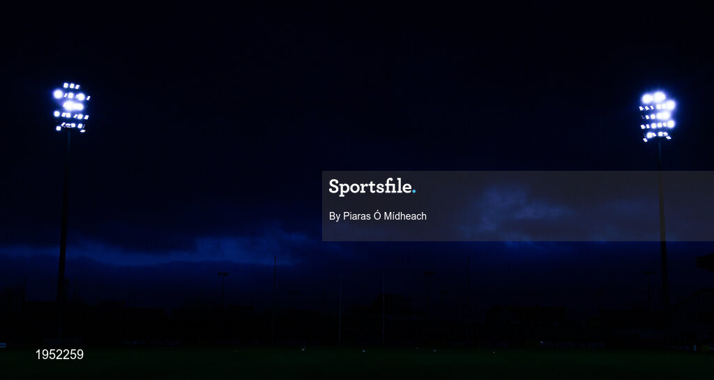 8 November 2020; A general view of two of the newly installed LED floodlights at the stadium switching on before the Leinster GAA Football Senior Championship Quarter-Final match between Offaly and Kildare at MW Hire O'Moore Park in Portlaoise, Laois. Photo by Piaras Ó Mídheach/Sportsfile