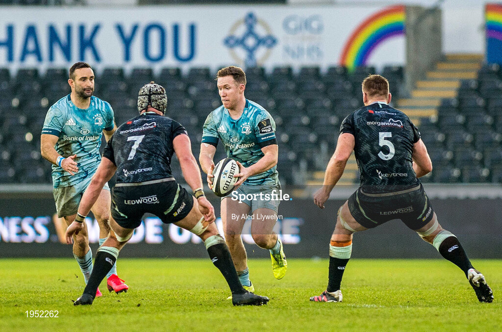 8 November 2020; Rory O'Loughlin of Leinster in action against Dan Lydiate, left, and Bradley Davies of Ospreys during the Guinness PRO14 match between Ospreys and Leinster at Liberty Stadium in Swansea, Wales. Photo by Aled Llywelyn/Sportsfile
